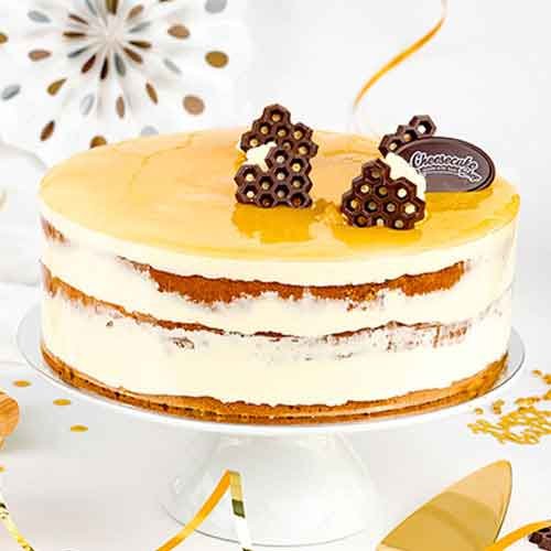 A vanilla sponge layered and coated with honey cream, topped with honey glaze and Belgian chocolates.