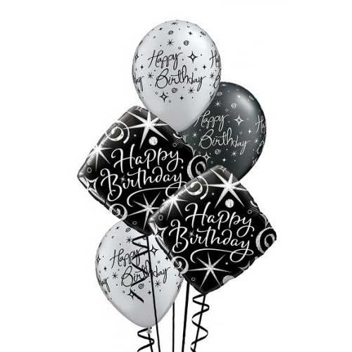 -10%This arrangement: 2 x Happy Birthday Elegant Sparkles & Swirls Foil (45cm), 3 x Happy Birthday Sparkles & Swirls latex (30cm) with HiFloat, Matching Ribbon & Weight, Personalised Greeting Card .