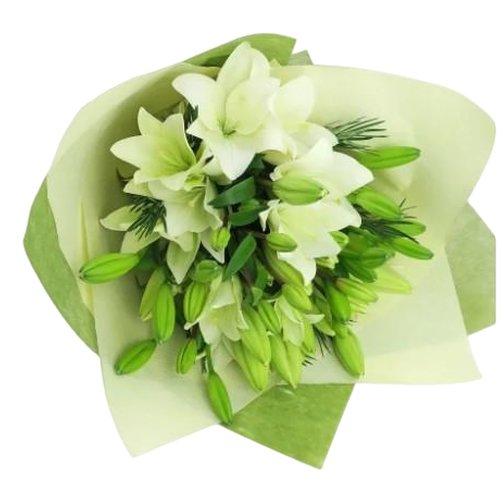 -10%Bouquet of 10 stem Asiatic White Lilly with Nice wrapping.