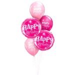-10%2 x Pink Happy Birthday Foil (45cm), 3 x Pink Happy Birthday Printed Latex (30cm) with HiFloat, Matching Ribbon & Weight, Personalised Greeting Card.
