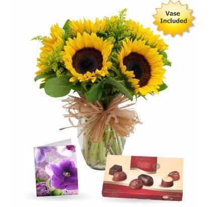 Beautifull combo Glass vase arrangement of Sunflowers and chocolate box
