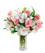 This splendid bouquet consists of delicate Alstromeria blooms, voluptuous Roses and fresh greens.
